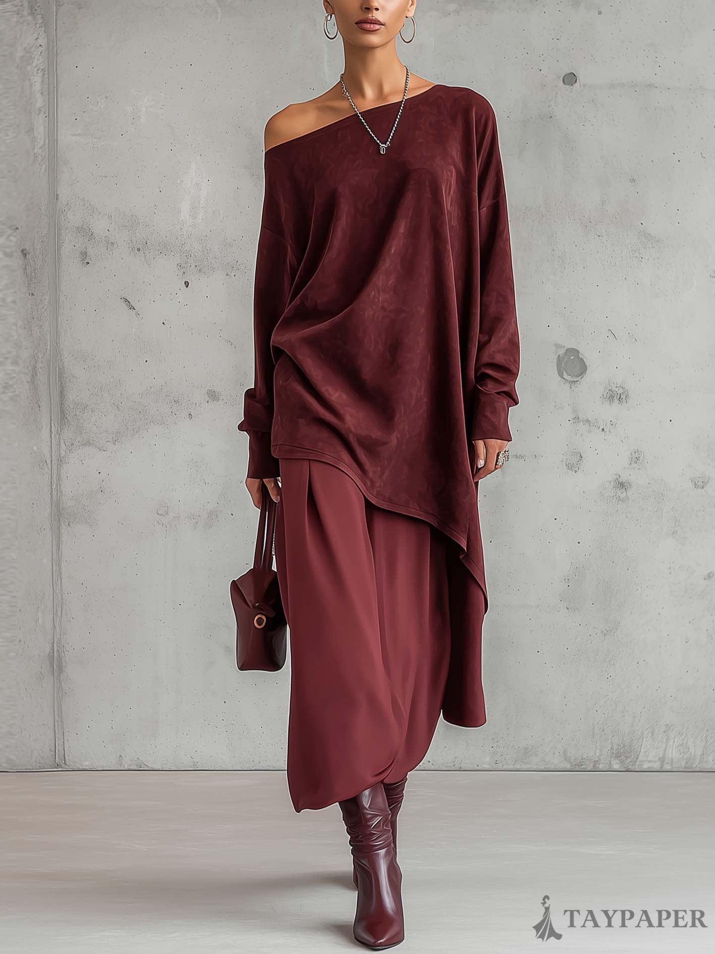 Material: Crafted from soft faux suede fabric, this dress feels smooth and luxurious on the skin, offering a slightly velvety texture with a rich burgundy tone. Design: Features a chic one-shoulder neckline and an asymmetric layered hem that creates dynamic movement and adds visual interest. Fit: Designed with a relaxed yet flattering silhouette that drapes beautifully, offering both comfort and elegance. Occasion: Ideal for evening events, cocktail parties, or refined gatherings where you want to make a stylish impression. Care Instructions: Hand wash cold or dry clean recommended to preserve the texture and shape of the faux suede fabric.