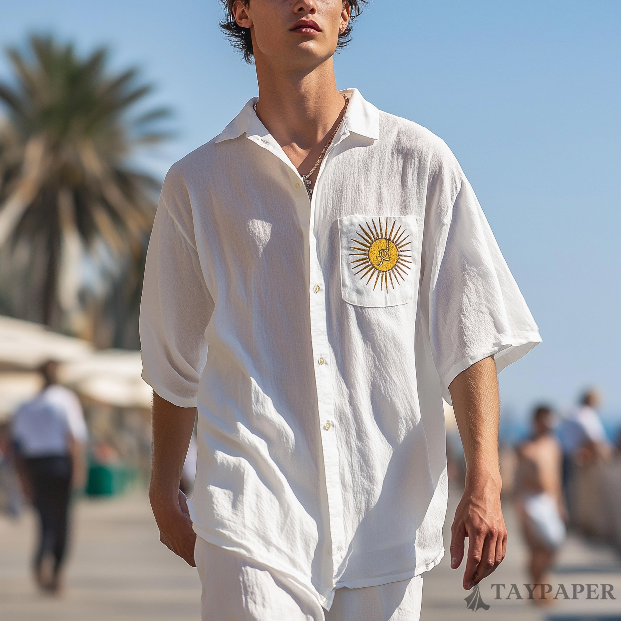Casual White Shirt With Sunburst Embroidery