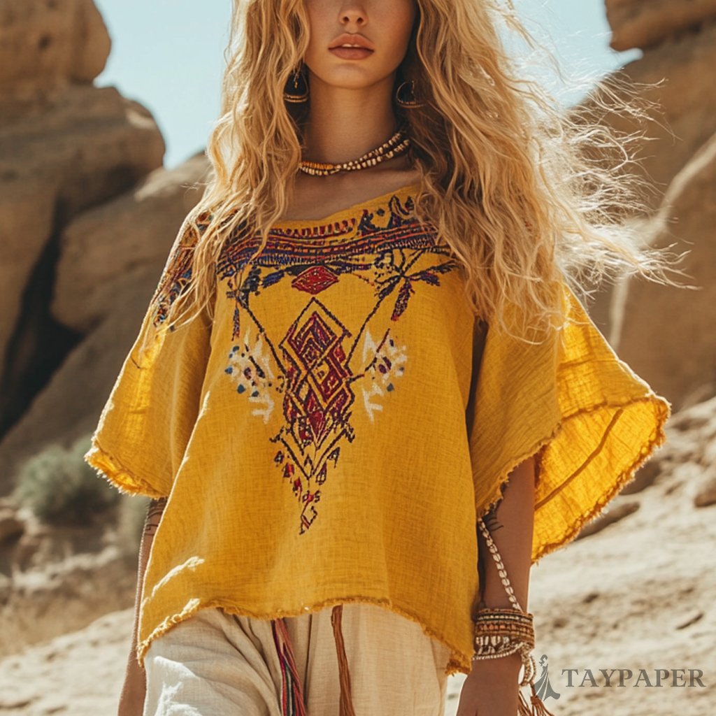 Desert Style Holiday Bohemian Vintage Linen Casual Top
