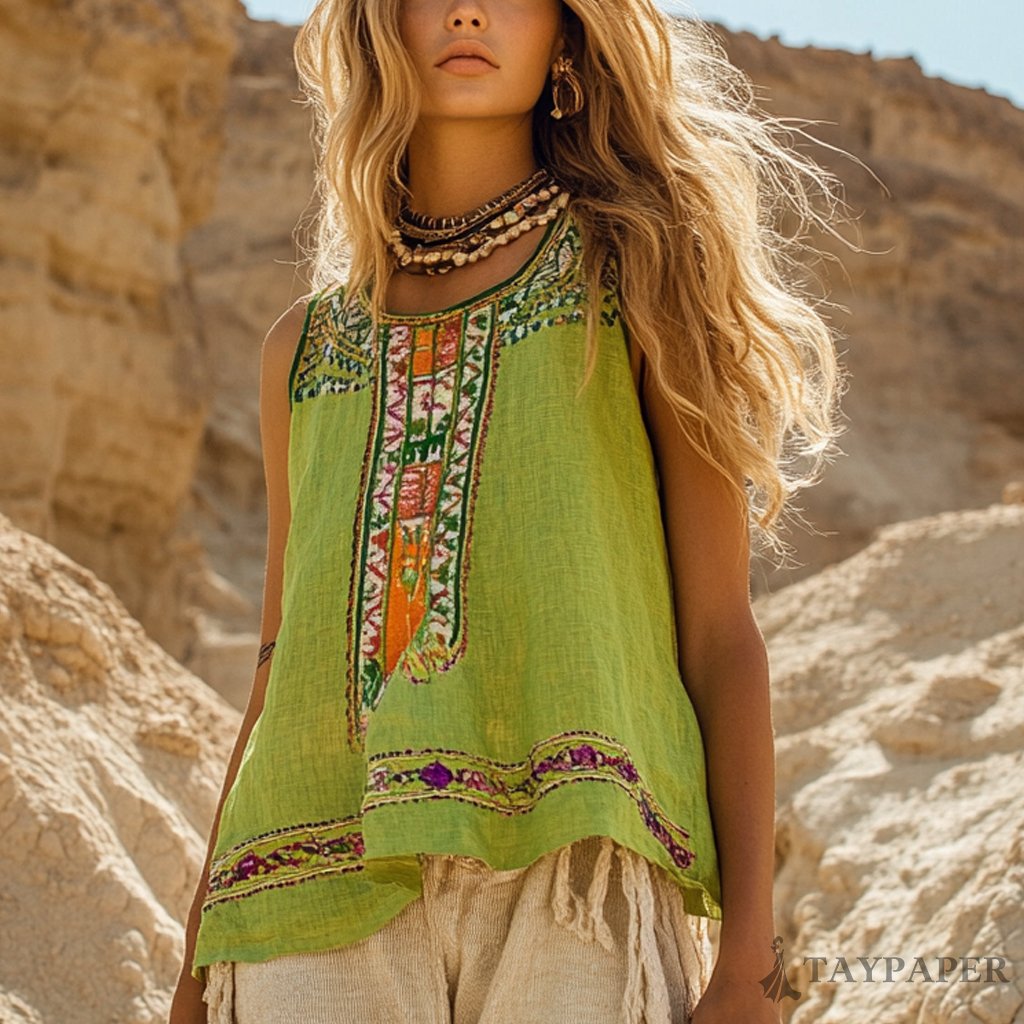 Desert Style Holiday Bohemian Vintage Linen Casual Top