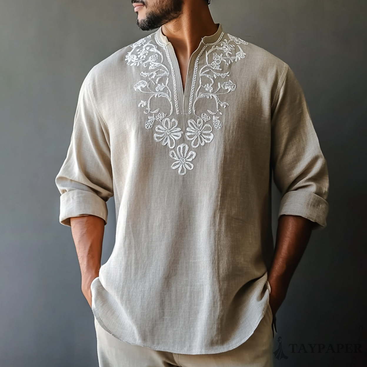 Men's Casual Vintage Cotton And Linen Long Sleeve Shirt