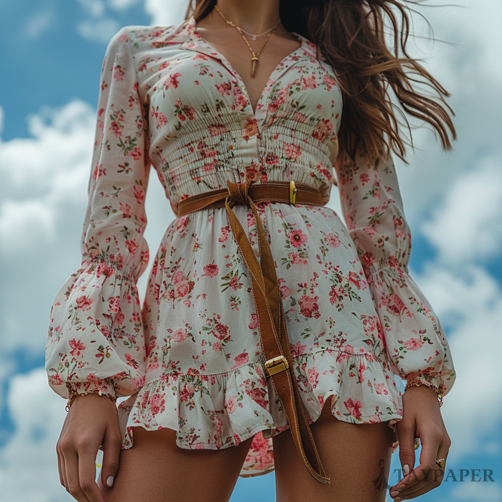 Women's Retro Floral Bohemian Pastoral Style Long-sleeved Mini Short Dress