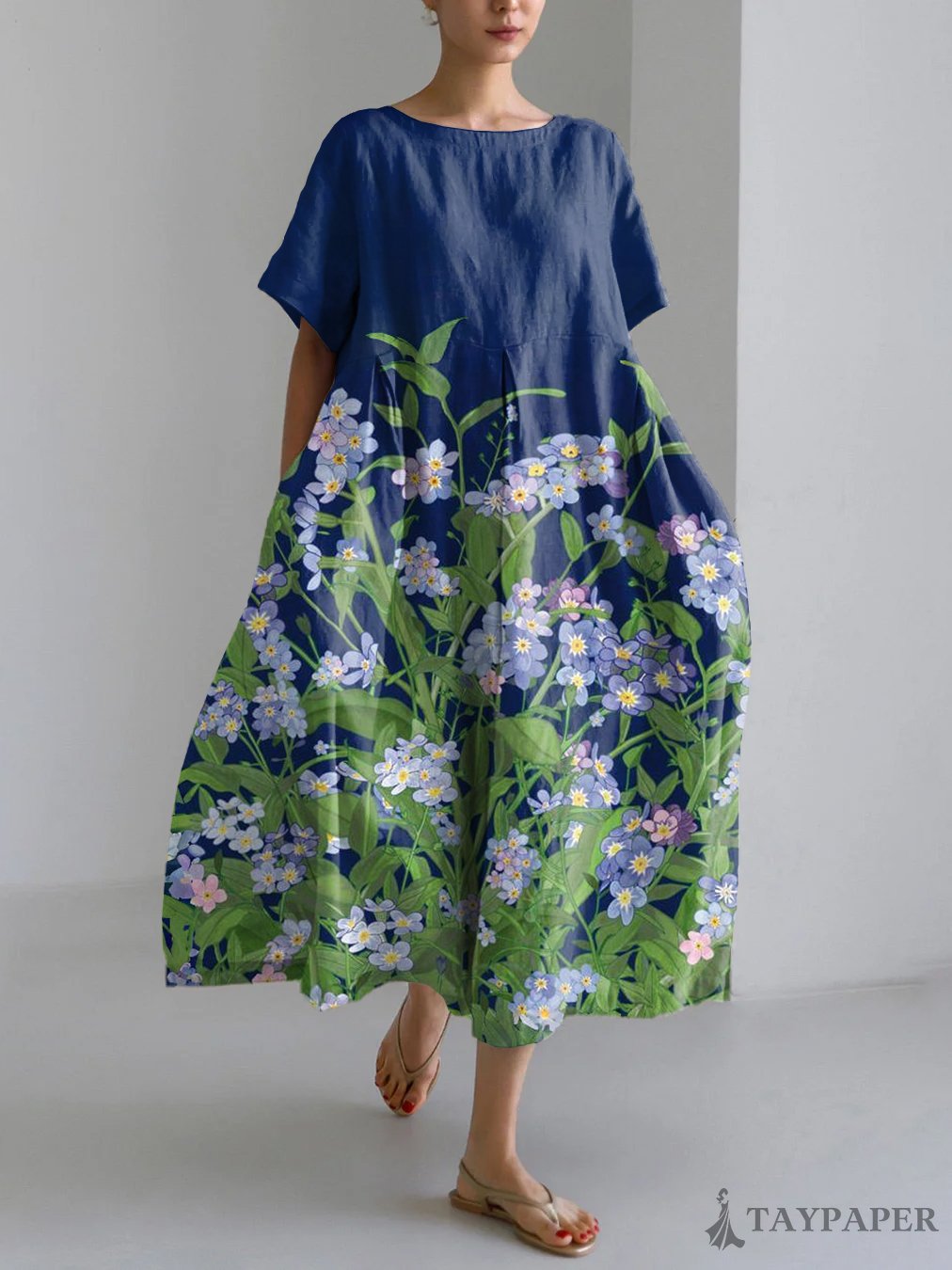 Vintage Flower Japanese Art Print Linen Blend Maxi Dress