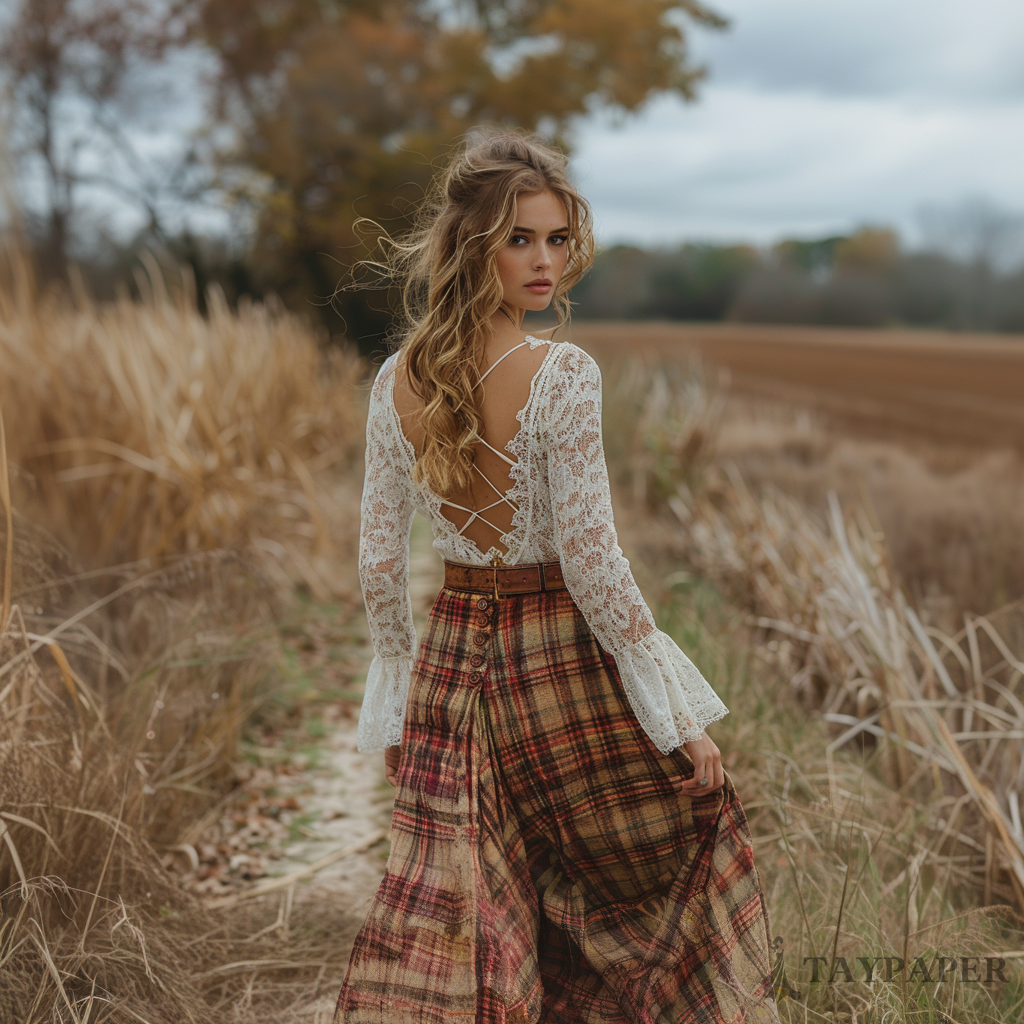 Women's Retro Pastoral Style Lace Long-sleeve Sexy Maxi Long Dress