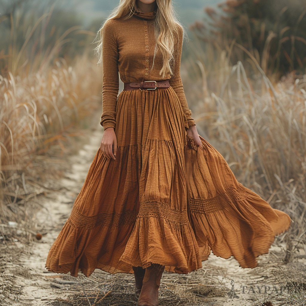 Women's Vintage Country Pastoral Linen Style Long-sleeve Maxi Long Dress