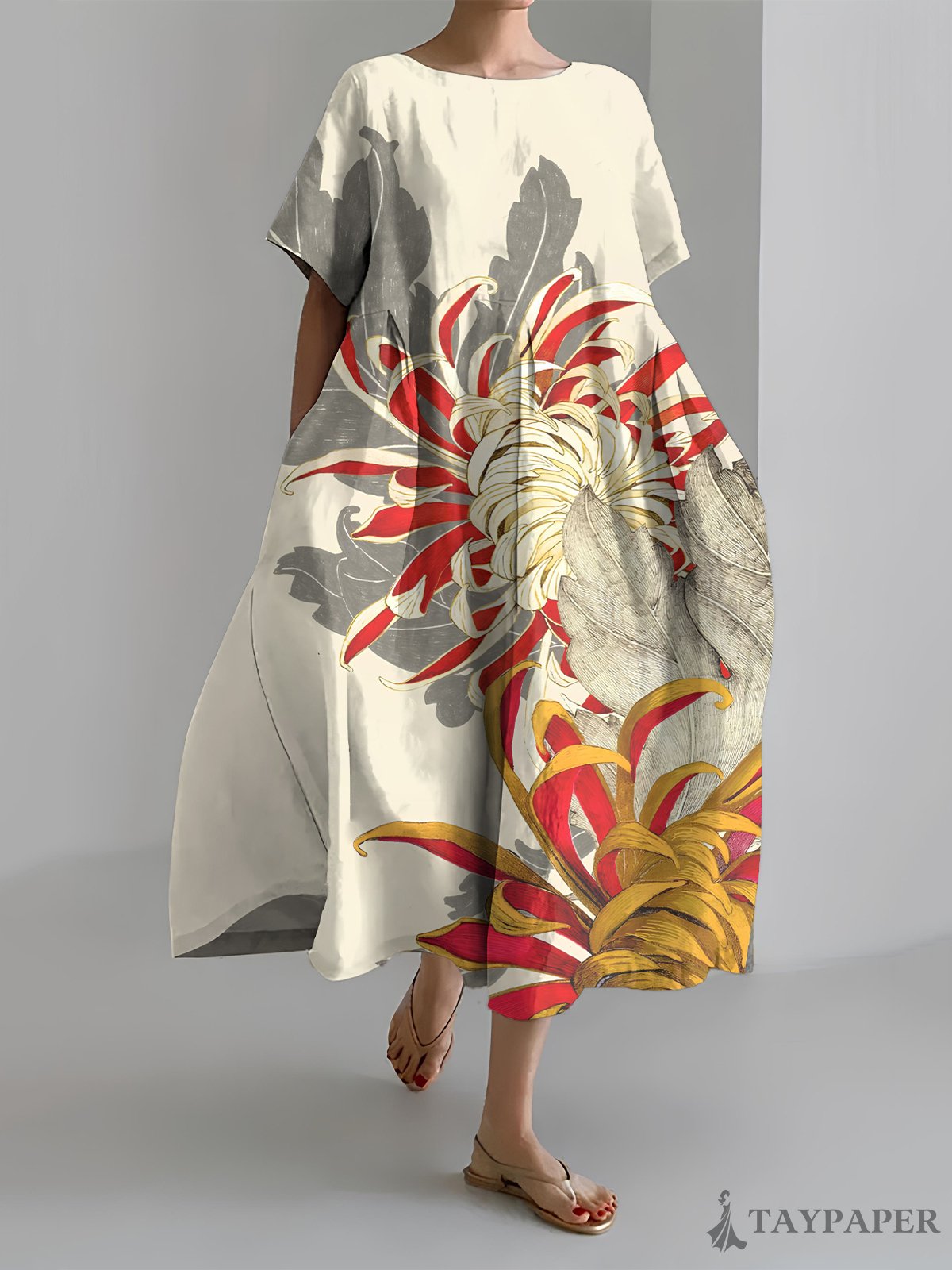 Women's Chrysanthemum Art Print Short Sleeve Dress
