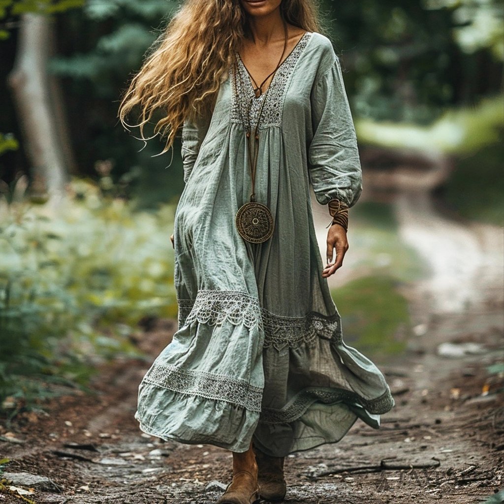 Women's Bohemian Linen Ethnic Casual Maxi Long Dress