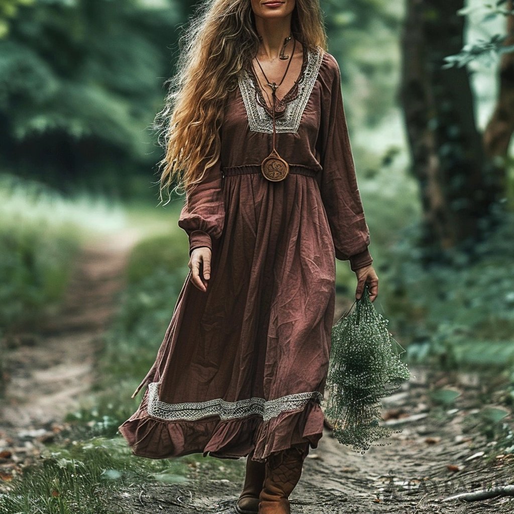 Women's Bohemian Linen Ethnic Maxi Long Dress