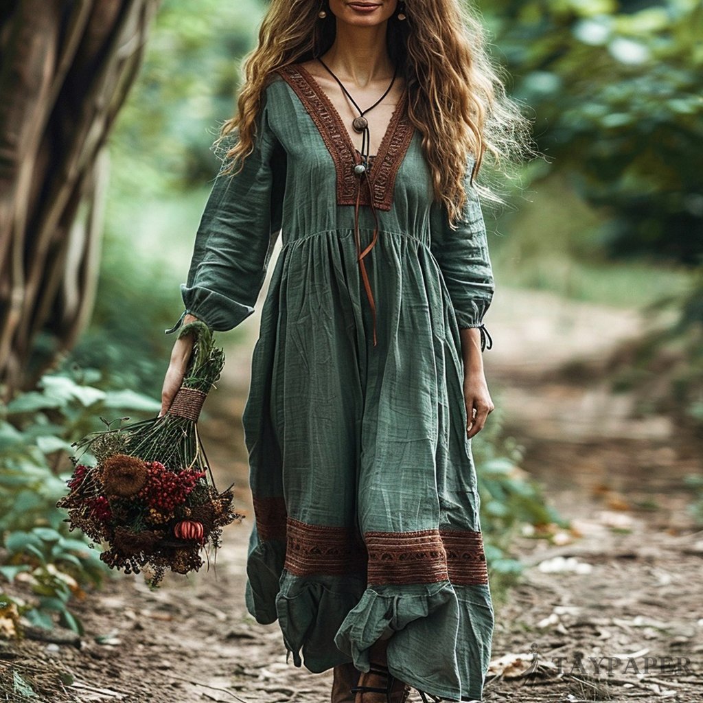 Women's Bohemian Linen Ethnic Simple Maxi Long Dress