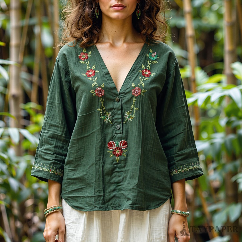 Women's New Casual Embroidery Printed Cotton And Linen Loose Shirt
