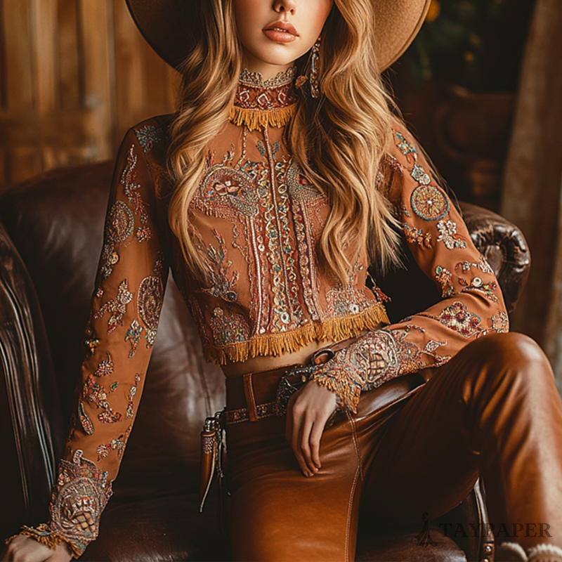 Women's Pendant Embroidery Pattern West Cowboy Bohemian Elegance Ethnic Patterns Crop Top