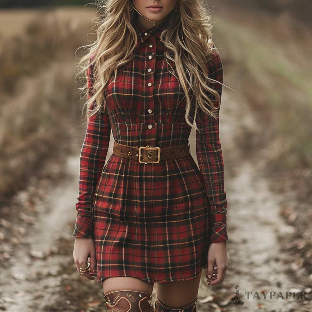 Women's Retro Plaid Pastoral Style Long-sleeve Mini Short Dress