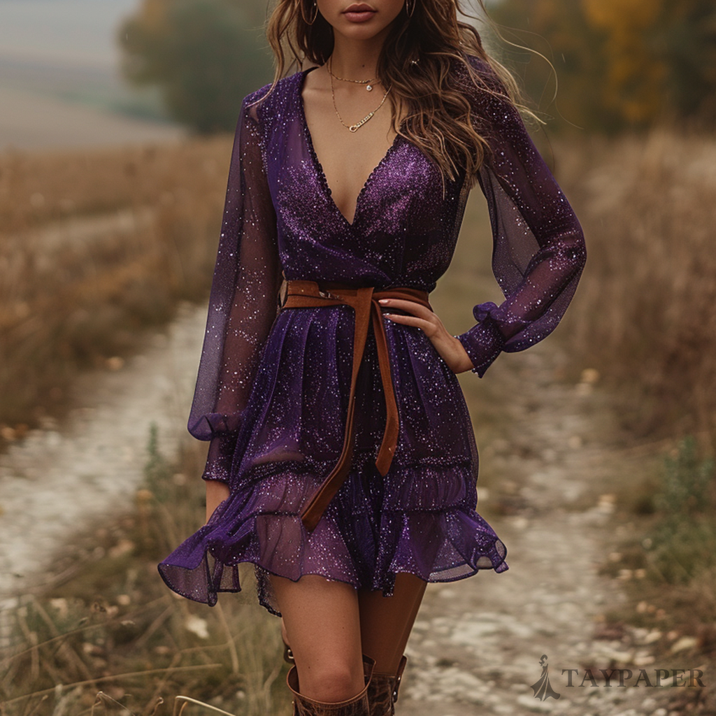 Women's Retro Pastoral Leopard Style Long-sleeve Short Skirt Dress