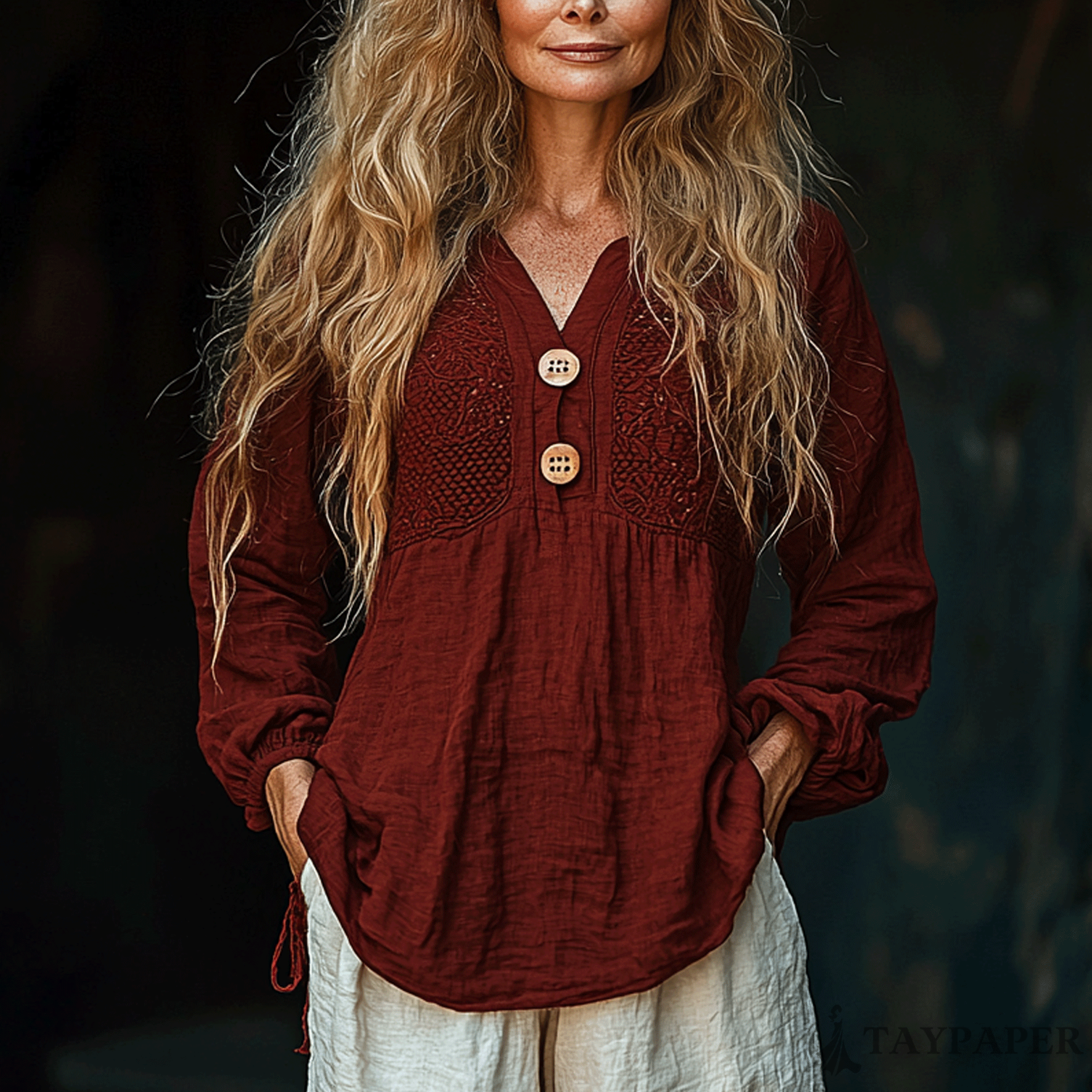 Women's Spring & Summer Bohemian V-neck Casual Loose Linen Shirt