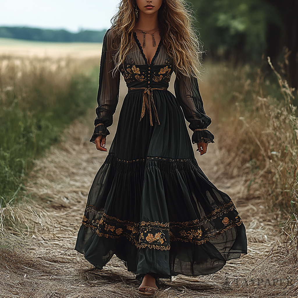 Women's Elegant Bohemian Pastoral Style Maxi Long Dress